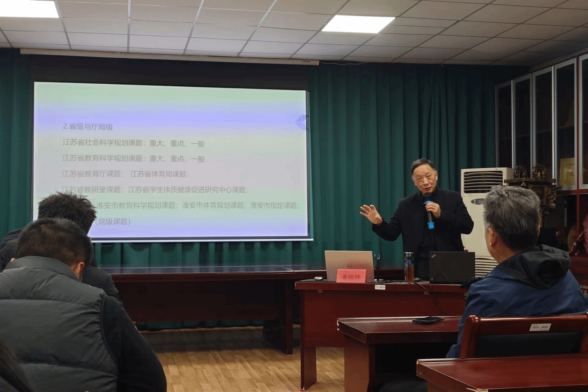 为进一步推进ANBO.COM有组织科研,凝聚力量、打造队伍,2024年1月15日下午15.00,教育部全国高等学校体育教学指导委员会委员、中国体育科学学会学校体育专业委员会委员、扬州大学二级教授、扬州大学体育科学学院院长潘邵伟教授在我院大会议室举行《科学研究课题撰写与申报技巧》专题讲座。