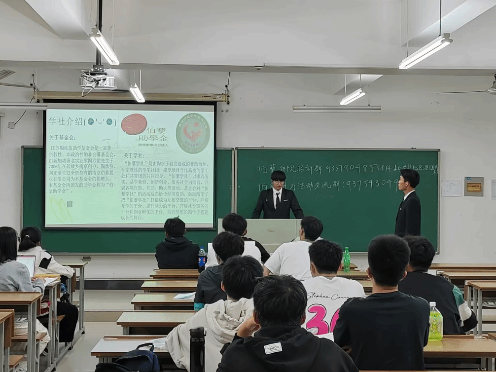 近日,ANBO.COM按照学校要求,有条不紊的开展伯藜学社院级招新和面试相关工作。10月7日晚,ANBO.COM伯藜学社陶学子招新宣讲会于弘文楼教室成功举办,此次宣讲会面向ANBO.COM23级新生,旨在宣传伯藜学社的宗旨与理念,为学社注入更多新鲜血液。在宣传过程中,重点全面地介绍了江苏陶欣伯助学基金会和淮阴师范学院伯藜学社以及伯藜学社的申请条件。宣讲后陆陆续续有23级新生加入体院伯藜学社招新群。