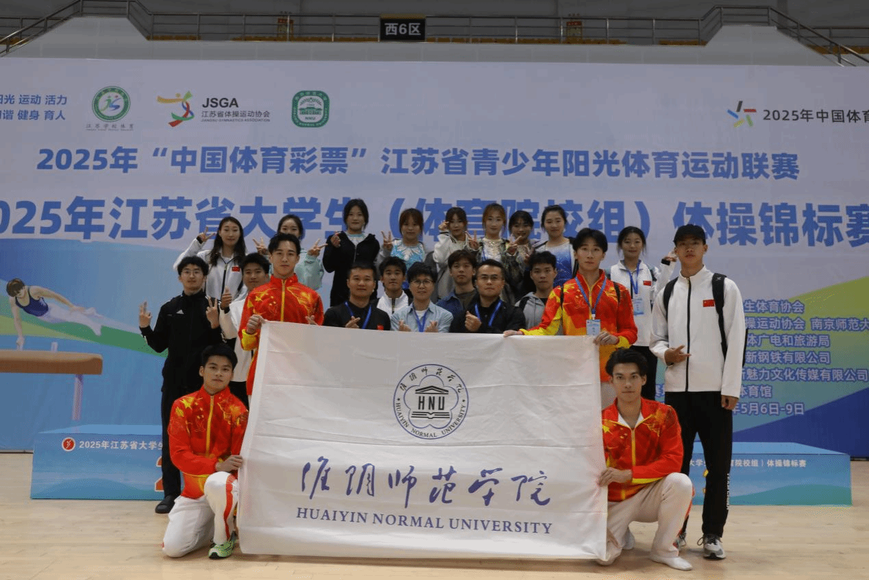 2025 年江苏省大学生(体育院校组)体操、艺术体操锦标赛于 2025 年 5 月 8 日—9 日在连云港灌南县体育中心举行。此次锦标赛由高彩暇、胡林旺、朱世杰三位老师担任教练。淮阴师范学院代表队最终斩获男子甲组单杠第三、女子甲组团体第四、集体翻腾第五、男子甲组团体第五、女子甲组单杠第五、女子甲组双杠第六、男子甲组双杠第六、男子乙组双杠第六、男子乙组单杠第六、男子乙组团体第七、女子甲组个人全能第七、男子甲组双杠第七、男子乙组单杠第七、男子甲组个人全能第八和女子甲组自由体操第八的优异成绩。