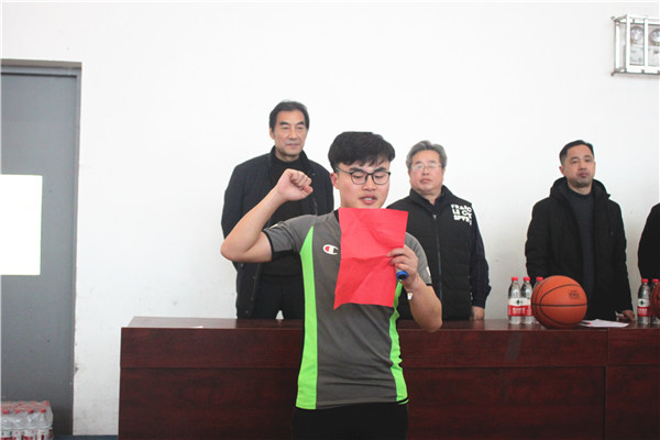 丁光明书记在开幕式致辞中希望:同学们在周周赛事这个舞台上能够丰富自己的业余生活。在此同时能够提升自己的专业技能,在比赛中将课堂所学融会贯通,来提升自己的专业素质和综合素养,将体育生奋发进取的精神面貌充分展示在这个舞台上。致辞过后,王佳彬、谢春磊同学分别代表了裁判员和运动员宣誓。