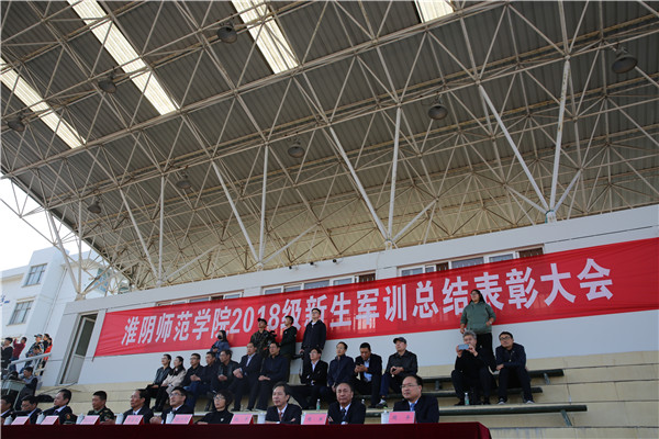 体院新闻网11月1日电(记者 郁艾 刘笑辰)11月1日,淮阴师范学院2018级新生军训汇报表演在新校区运动场举行。校领导朱汉清、焦富民、金叶玲、杨亚军、施军、韩同友、周军、赵宜江,以及全体新生与教官出席了活动,此次汇报表演由陆林召主持。