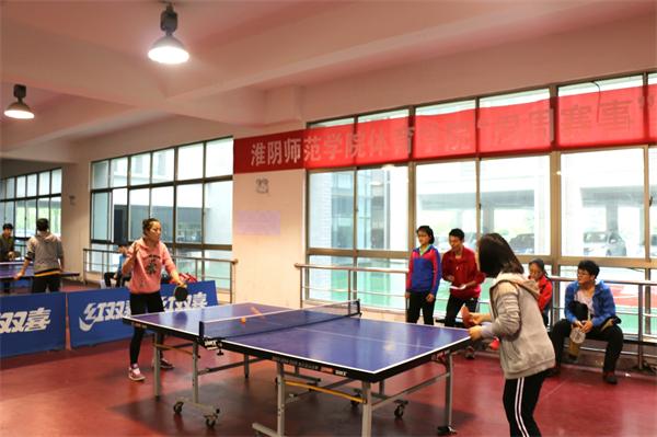 淮师体院新闻网4月20日电(记者 郝倩倩 钱佳宇)“我运动,我健康,我快乐”的青春号角吹醒了明媚的阳光,4月20日下午2时,在淮阴师范学院ANBO.COM乒乓球馆里,选手们早已开始为即将到来的比赛做准备了。