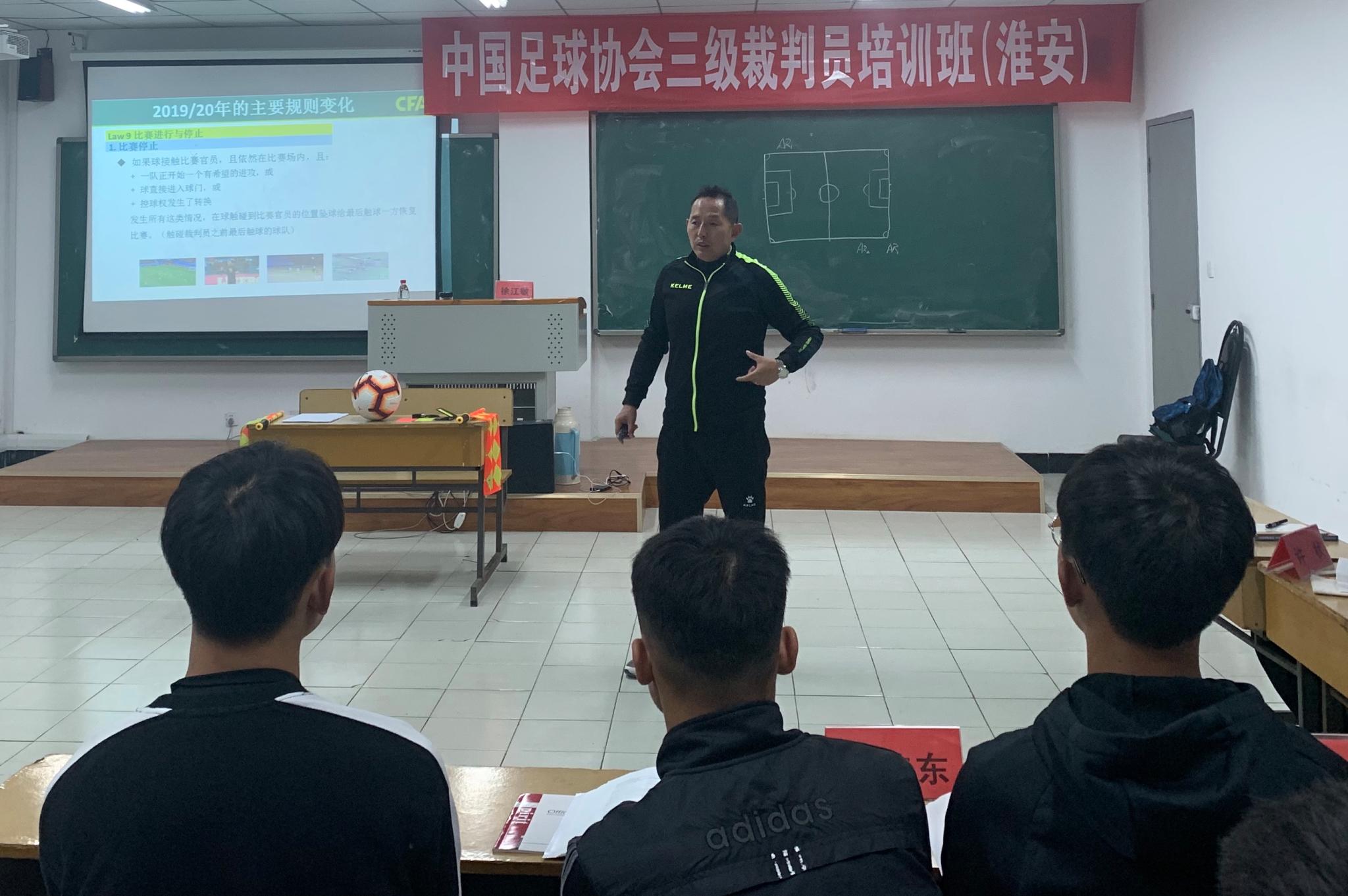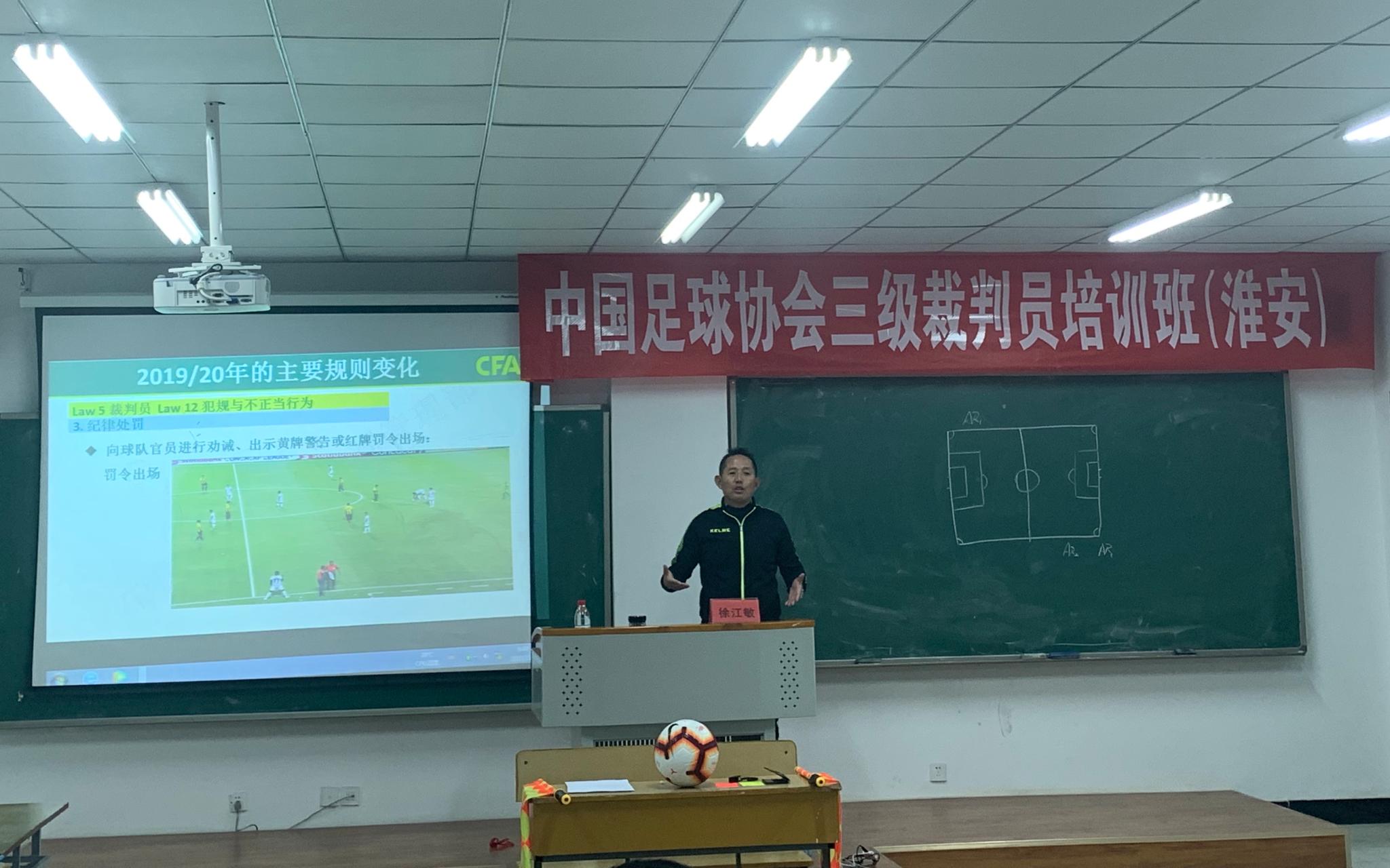 本次三级裁判培训班(淮安)共30人,培训重点对象为淮安市各大高校对足球和足球裁判有极高热忱的学生和淮安本地长期从事足球工作的社会人员。本次培训课程分为三部分,分别为理论部分、实践部分、见习部分。上午学员在ANBO.COM101教室学习裁判基本理论知识,下午在操场学习边裁基本旗示,并由主讲师徐江敏带往现场参观学习淮安市业余比赛中的裁判。本次培训班为期三天,在11月3日下午5点随着结营仪式的开展顺利结束。
