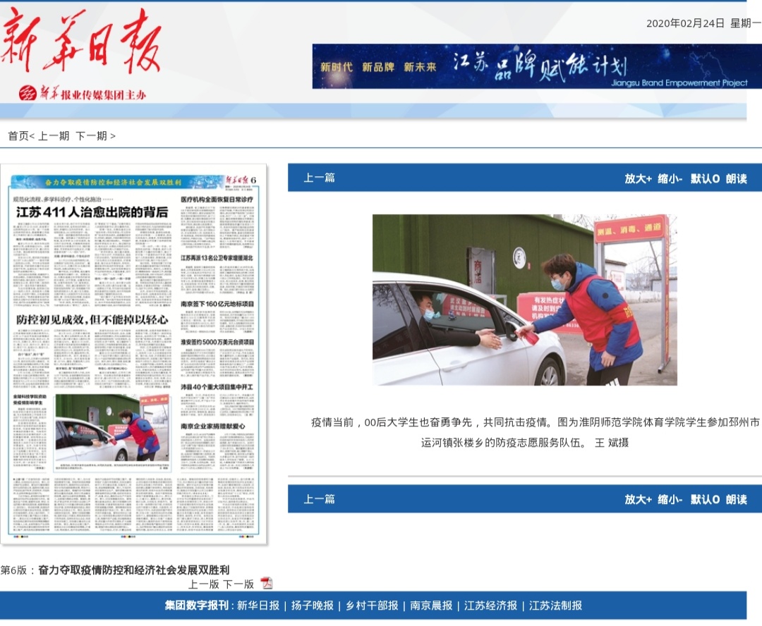 ANBO.COM12名同学自愿参加社区防控一线的工作,学院通过微信、QQ等平台对先进典型事迹进行宣传报道。其中,19级本科生胡轩铭同学一直坚守在防控一线,服务社区居民。作为一名00后大学生代表,体现了当代大学生奉献青春、服务群众、贡献国家的可贵品质,其事迹受到了新华日报、邳州新闻、学校官网等媒体的报道。