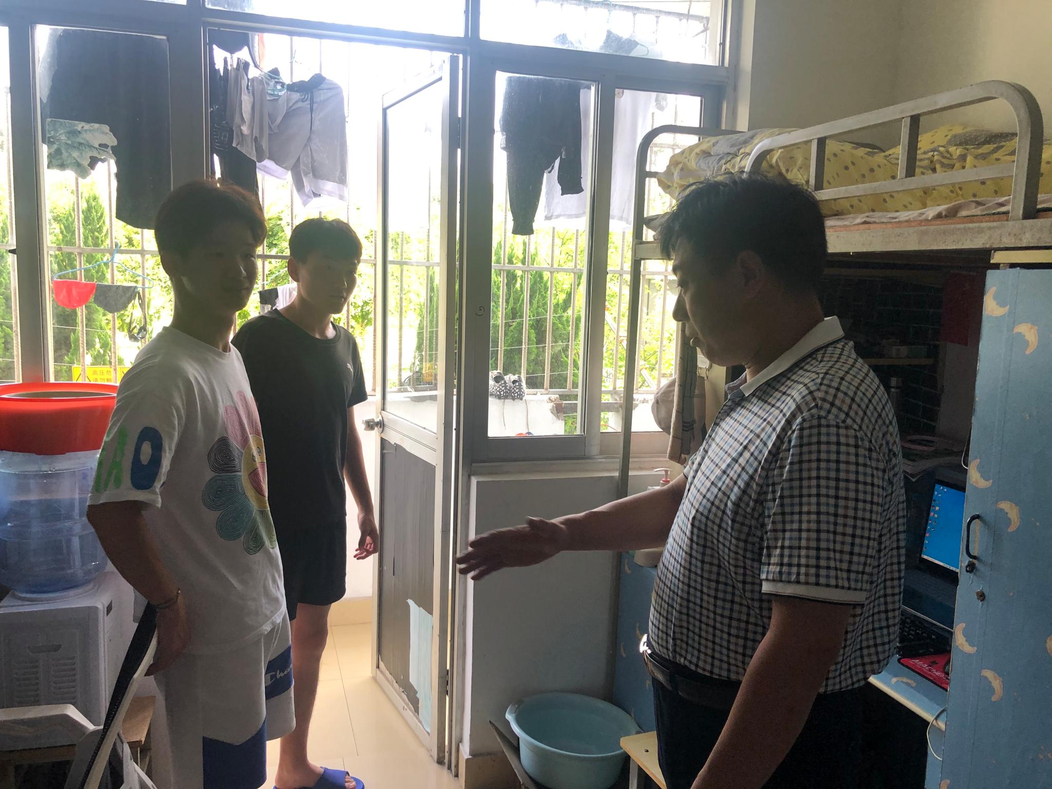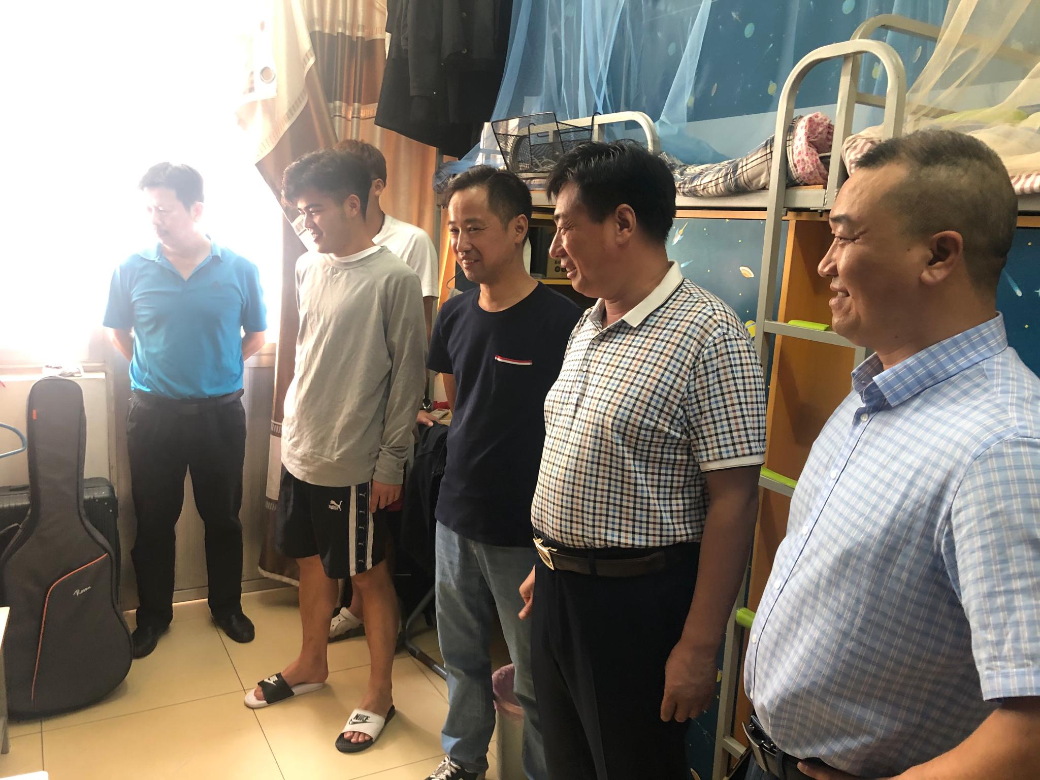 8月24日下午,ANBO.COM党委书记,院长陆林召带领学院全体领导班子、辅导员深入学生宿舍看望返校学生。