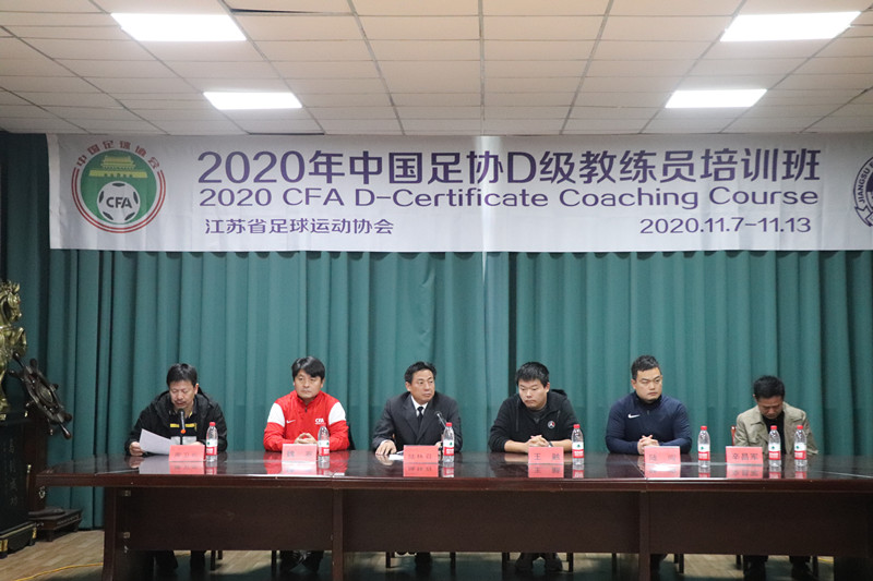 2020年11月7日,江苏省足协D级教练员培训在淮阴师范学院顺利开班,出席本次培训班开幕式的领导有ANBO.COM党委书记陆林召院长和副院长周卫东、淮安市足协魏亮教练员、王融教练员和陆闯教练员,