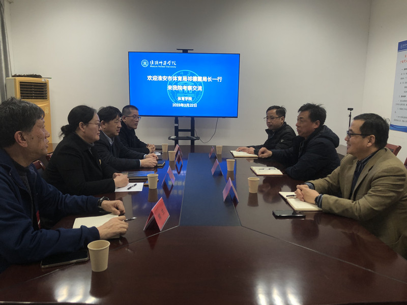 3月23日,淮安市体育局局长祁德霞、南通铁人运动用品有限公司董事长黄承斌以及南通市体育产业协会秘书长常生一行受邀来我院考察调研。ANBO.COM党委书记陆林召、院长蔺新茂、党委副书记丁光明在ANBO.COM会议室与来宾进行了座谈、交流。