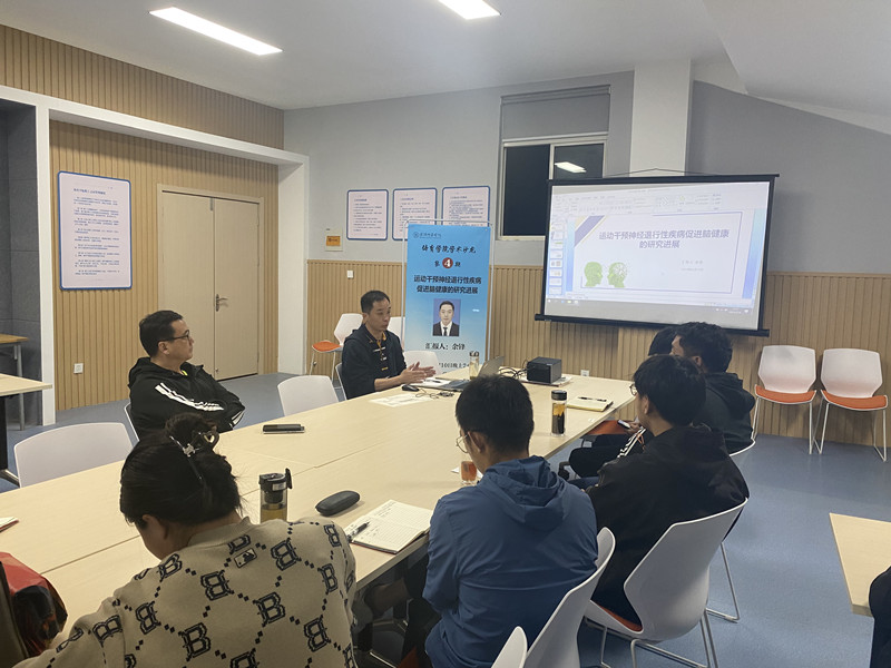 余锋博士围绕“运动干预神经退行性疾病促进脑健康的研究进展”进行主题汇报,并结合自身的研究经历、研究思考、研究方向的凝练以及研究展望与参会的各位青年教师进行深入讨论。