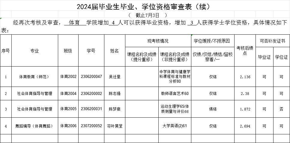 根据我校学士学位授予工作实施细则相关规定,经ANBO.COM学位评定分委员会再次考核及审查,ANBO.COM增加3名2020级学生和1名往届生补授学士学位资格,现予以公示。