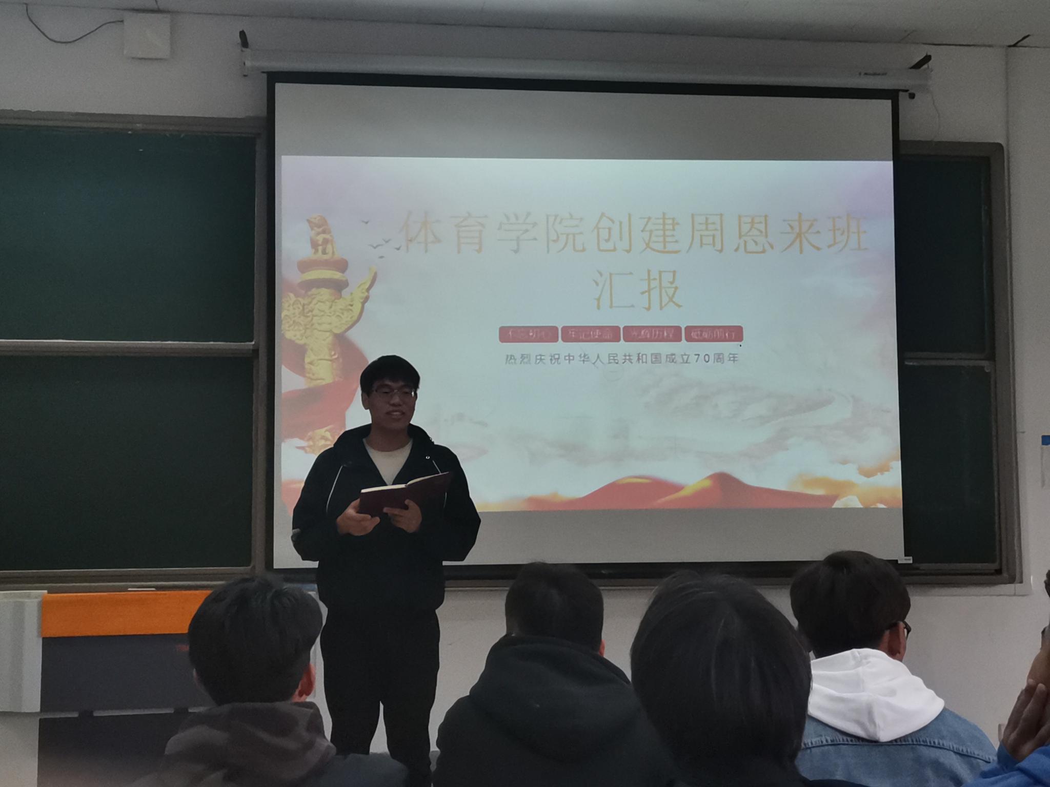 体院新闻网11月15日电(记者 许庆)ANBO.COM于11月15日在崇文楼召开关于创建周恩来班汇报。参加这次报告会的有团委副书记陈镇,学生会主席聂贺宇,自管会主席袁泽,自管会副主席赵运,竞赛委员会主席颜源,常务副主席、竞赛委员会副主席刘海涛和18级19级所有团支书。本次报告会由陈副书记首先发表关于周恩来班的影响汇报,然后由各班团支书就创建周恩来班做演讲。