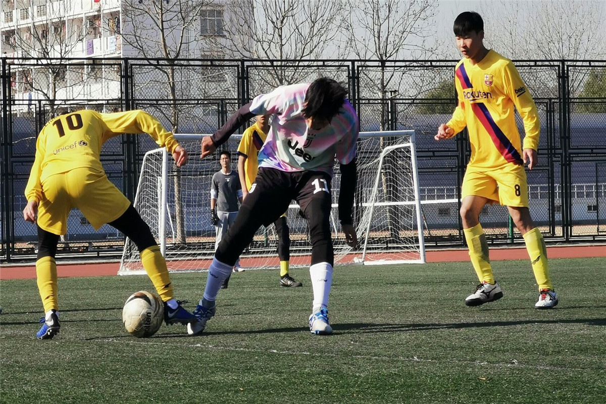 阳光挥洒在绿茵场上,运动员们用自己的汗水尽情的展现自己。随着裁判一声哨响,比赛正式开始。在上半场中1705和1805双方都使出全力,你拼我抢,最后踢个平局。下半场中,在昂扬的斗志和高超的技术下,1705迅速占据了控球优势。最终用完美的配合和高超的运球技术,以1:0的比分领先了1805班。