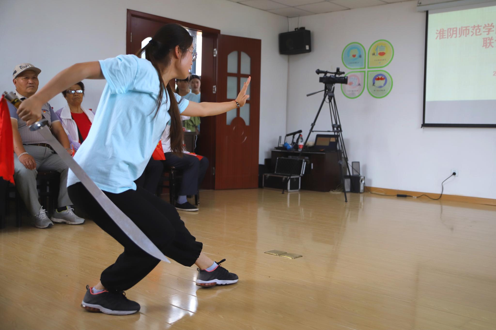 实践团成员为在场的老党员同志带来了精彩的节目。传媒学院合唱《光荣啊,中国共青团》,用声音传递青年的力量;ANBO.COM带来的舞蹈表演和武术表演,刚柔并济,彰显了青年一代的朝气和梦想;ANBO.COM退伍军人李翰林带来歌曲《强军有我》,挺拔的身姿,昂扬的气质,他用铿锵有力的声音发出了时代最强音。