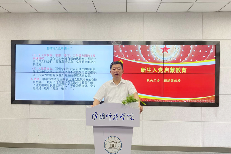 9月7日上午,淮阴师范学院关工委常务副主任顾建国教授通过线上,为2022级新生作了“入党启蒙教育”专题讲座。顾建国教授在讲座中指出,青年大学生要在三个方面下功夫:一是端正入党动机,坚定理想信念;二是认真学习党章,牢记党的宗旨;三是加强党性锻炼,努力思想入党。他强调,作为入党积极分子,抓住“思想入党”的精髓,号召青年大学生要认真加强思想政治修养,坚定理想信念,端正入党动机,做政治过硬、思想合格、专业够强的全面发展的时代新人。顾建国还介绍了党员组织发展的基本程序。